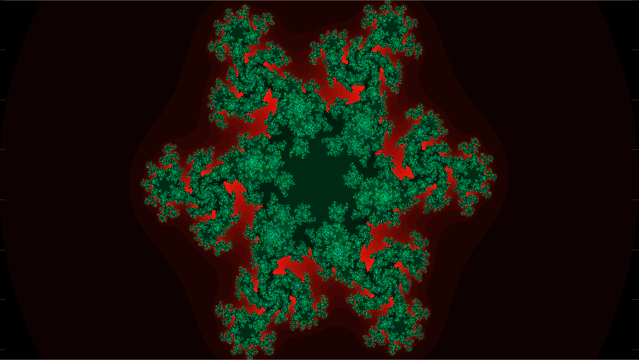 To start, we look at a region of interest in the complex plane (for example the real and imaginary axes going from -5 to 5), and run each complex “point” z in the region (in reality there are infinite points, so we just take each pixel) through an expression. For Julia sets, this expression follows zk+1 = zkn + c, where n and c can be varied to generate many different patterns. Each point is iterated through the expression and if the value z exceeds a given magnitude R in a finite number of iterations, the iteration is recorded. Otherwise, the point z is said not to diverge and this is noted. A corresponding color map graphically represents the number of iterations for each pixel in the image, and if the point does not diverge it is left black.